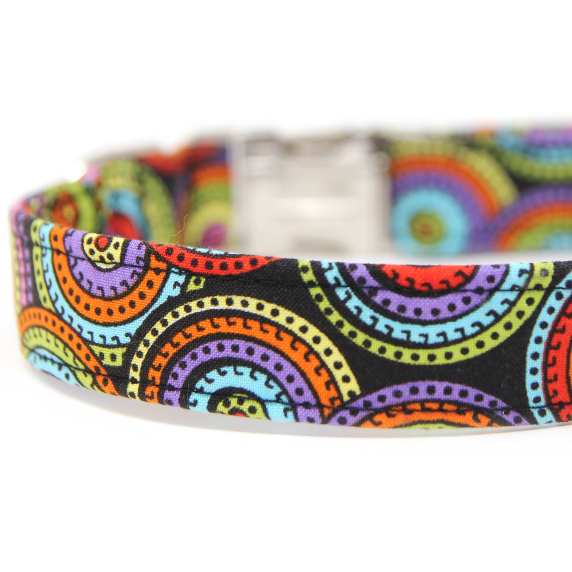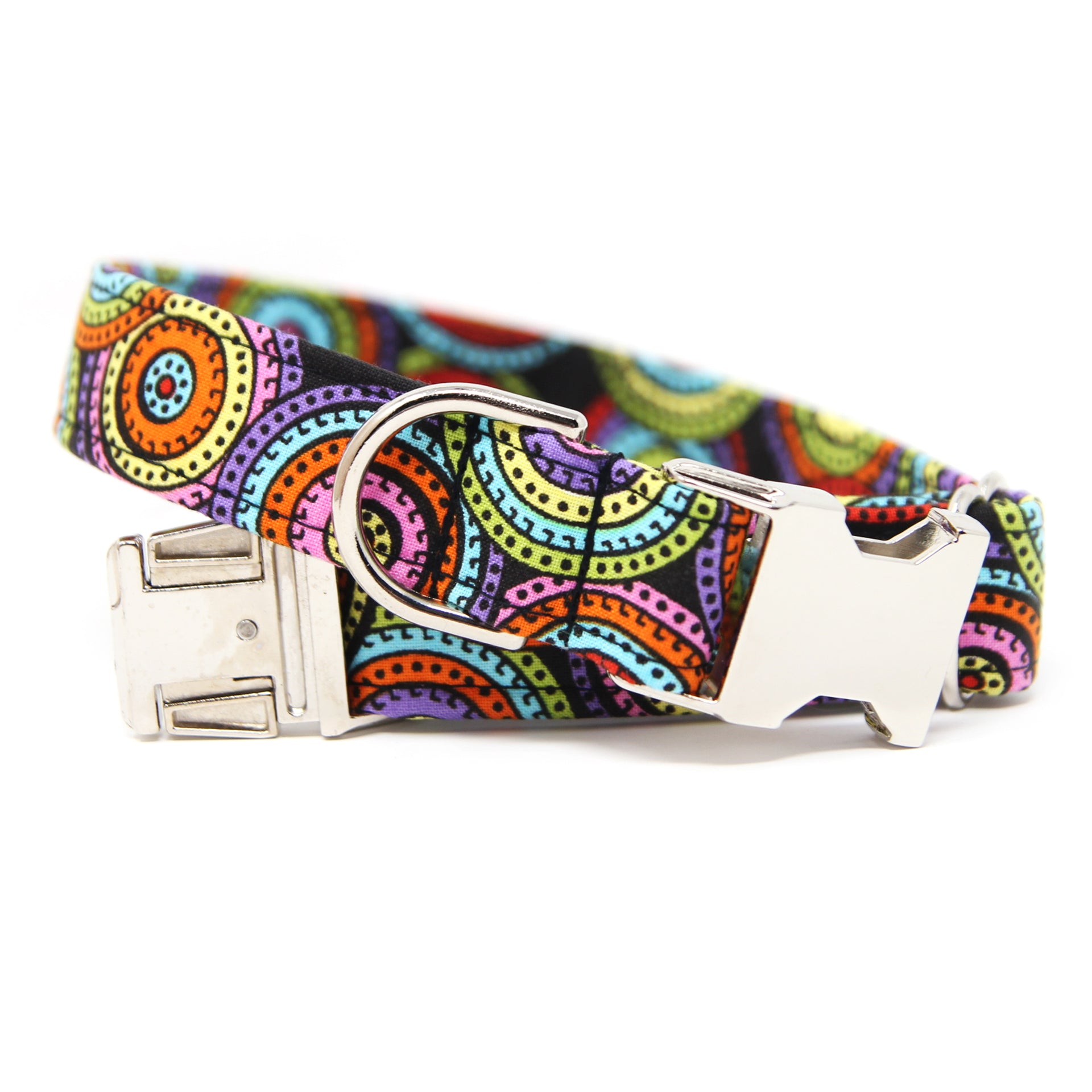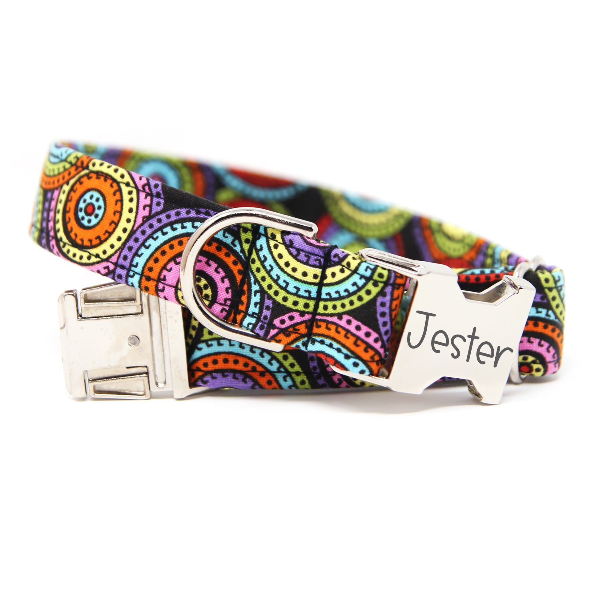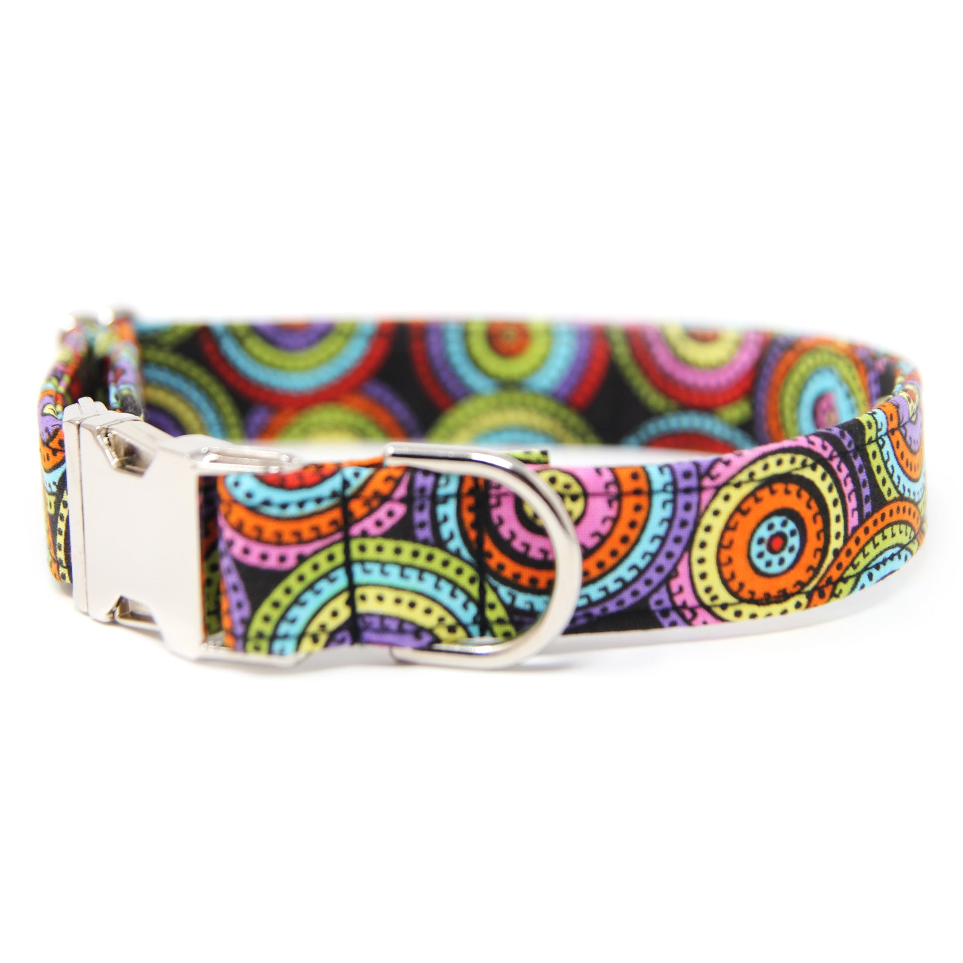 This colorful polka dot collar provides both style and comfort for your dog. Choosing this fun dot dog collar will ensure that your looks fabulous for walks while staying safe with a personalized collar