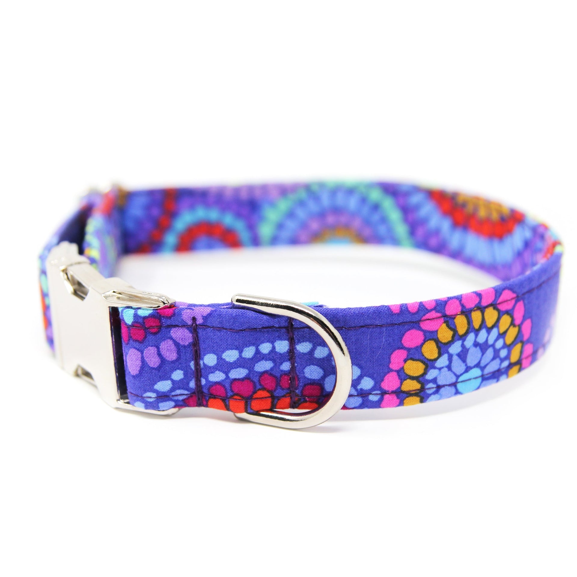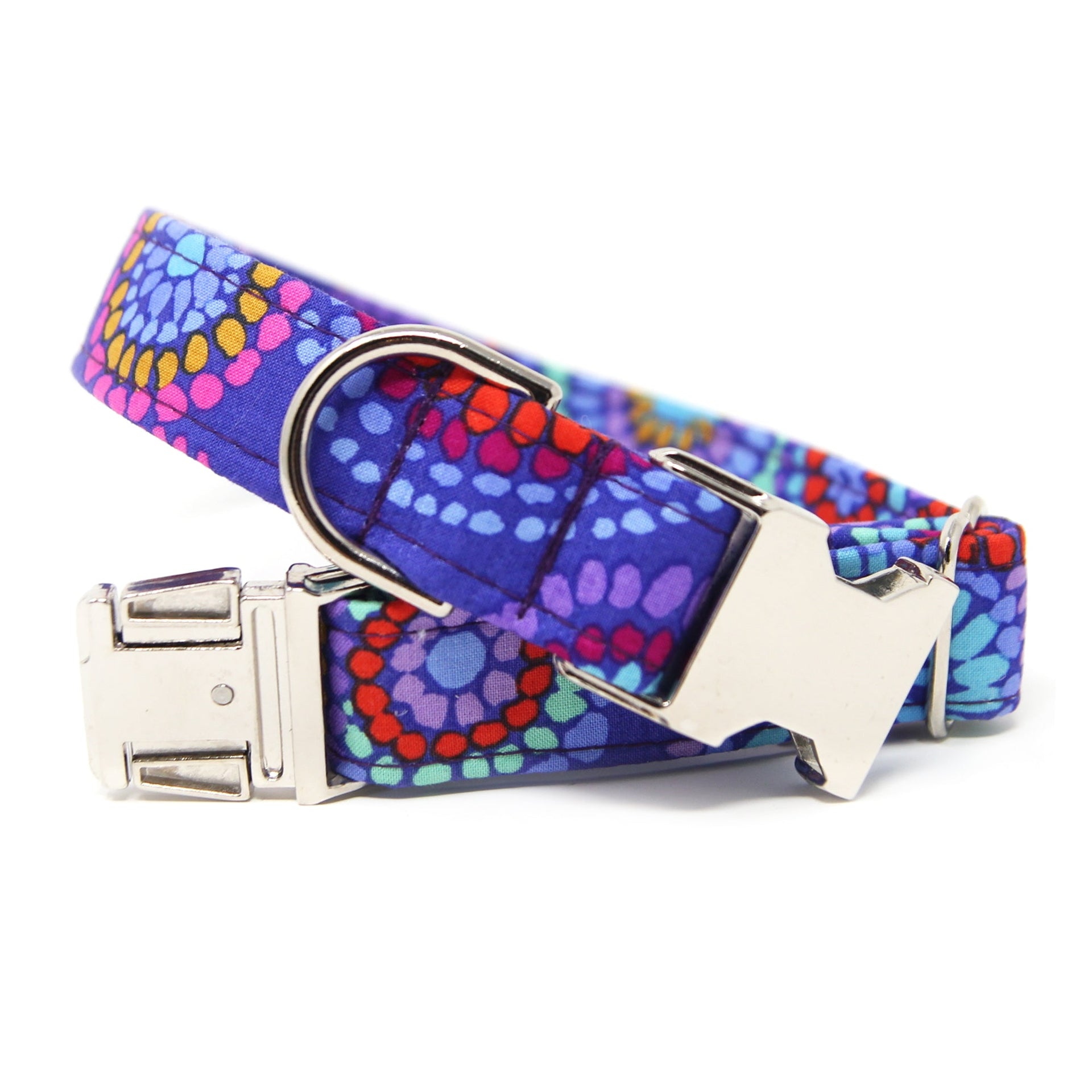 Give your companion the luxury they deserve with this stunning Purple Polka Dot dog collar. Your pooch will look uber stylish while staying safe with the optional personalization.