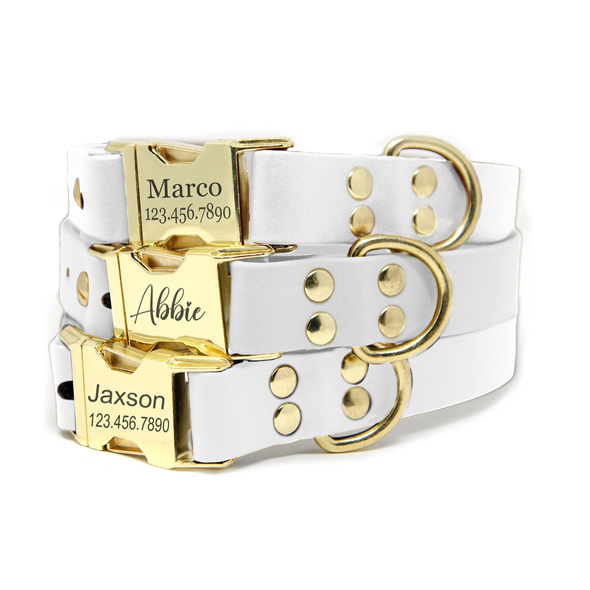 Crafted from durable Biothane material, this collar is both waterproof and odor resistant, ensuring your furry friend stays comfortable and dry no matter what. Add the optional buckle engraving for a personalized touch.Features:
