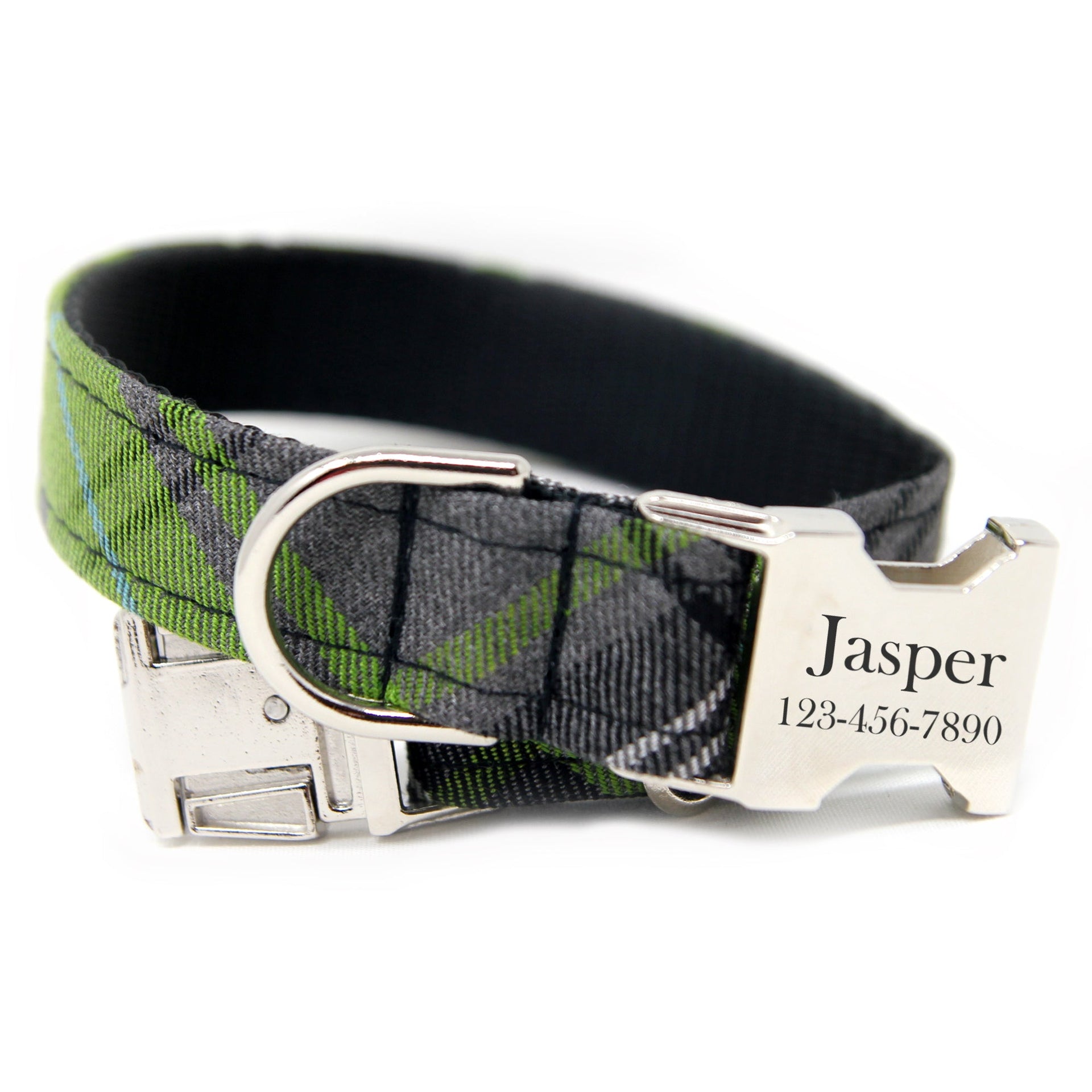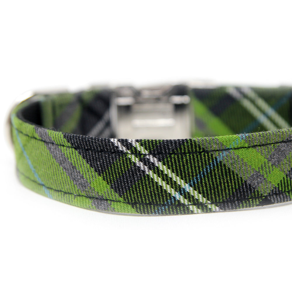 A Green and gray tartan dog collar is a super classy look for your pup. Handmade in the USA with the finest materials available. Please measure your pet prior to purchase to ensure a proper fit. Not all of our buckles are suitable for small breed dogs.