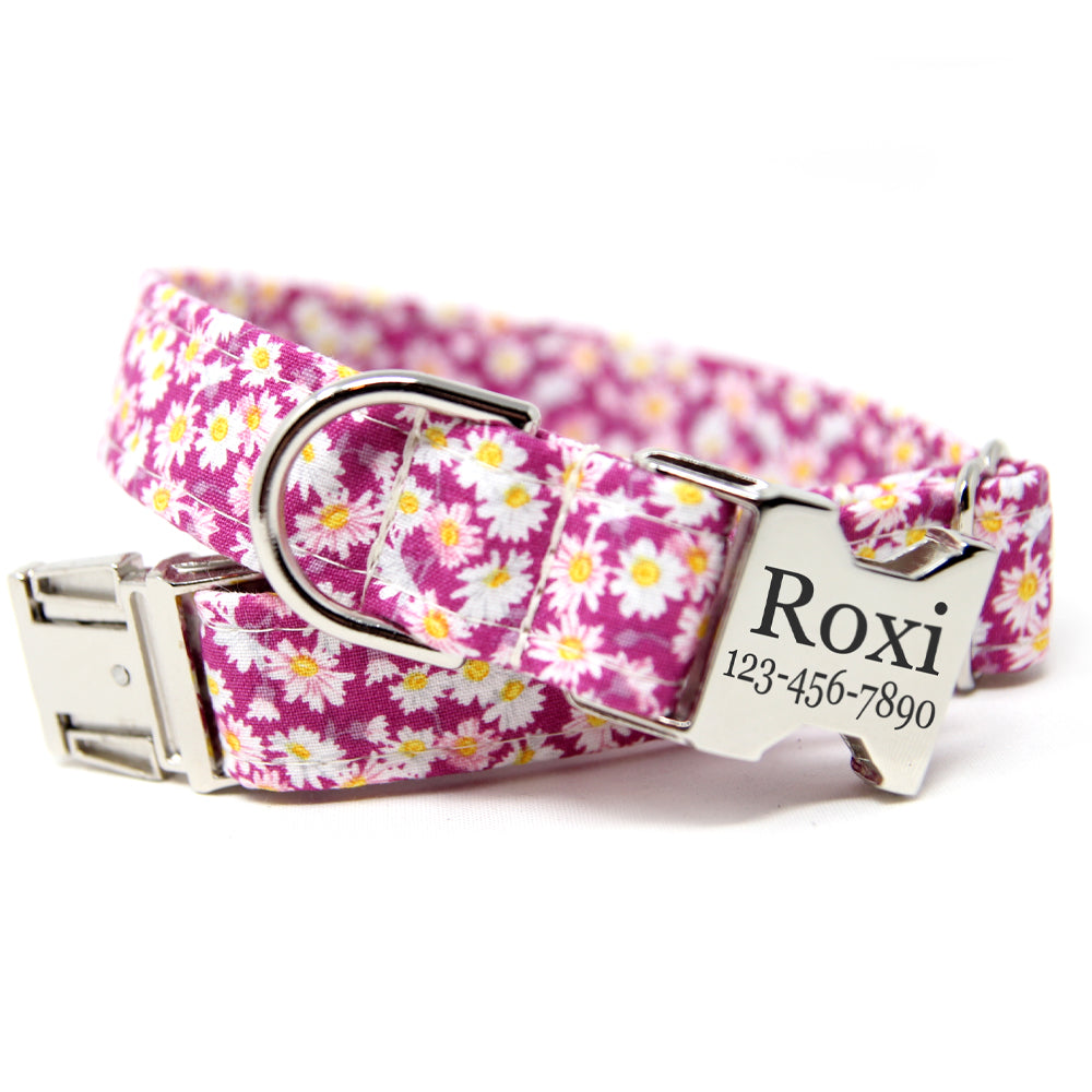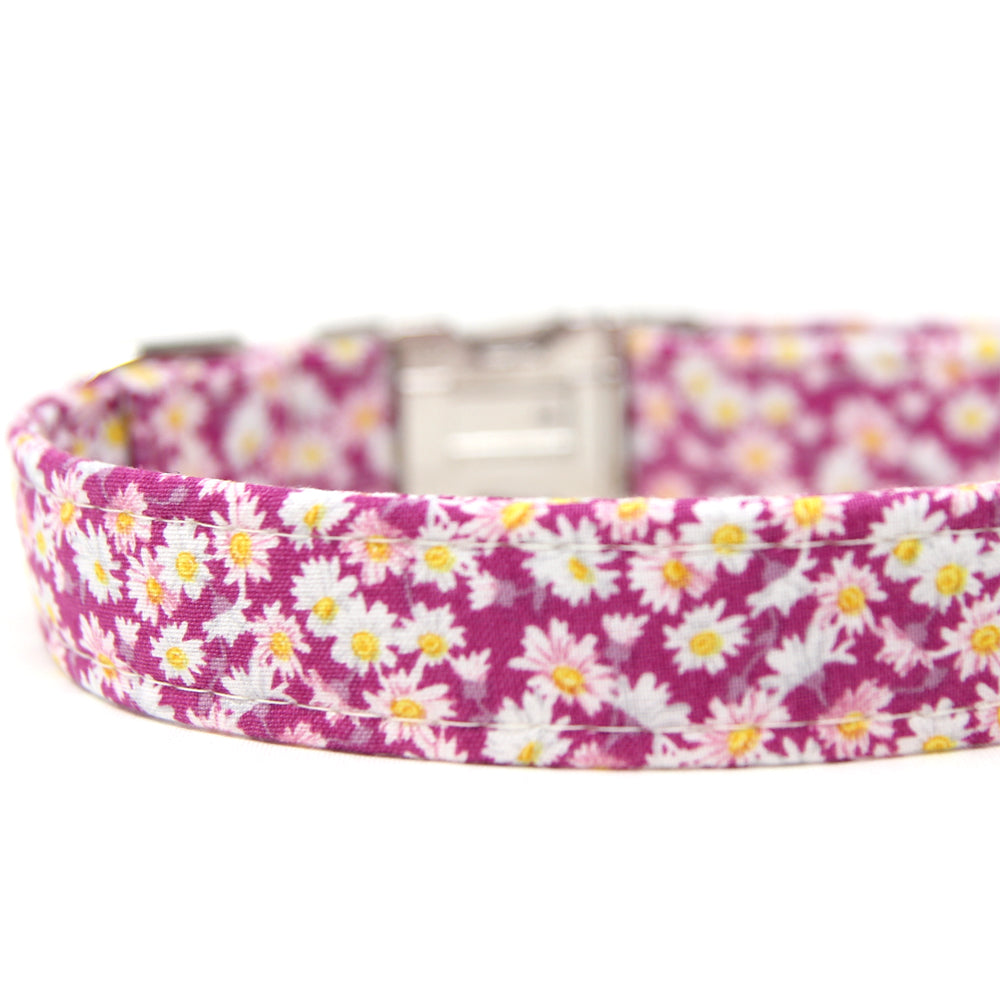 A popular floral collar with white daisies on a pink background